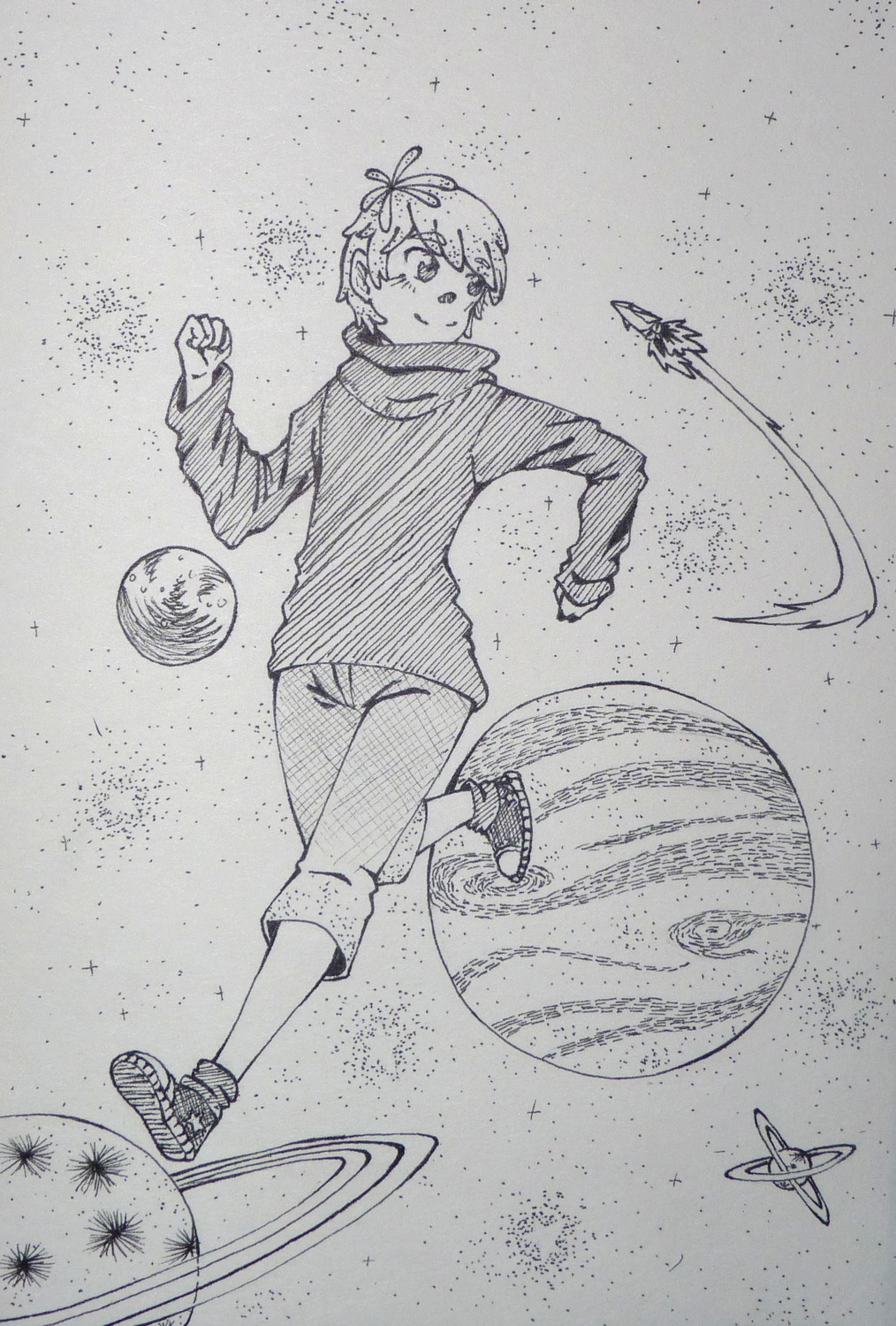 Pour l'inktober j'ai dessiné le même gars que pour le thème précédent, j'ai décidé de m'en faire un perso~ Il s'appelle Elta, et il se balade dans l'espace parce que why not~ o/