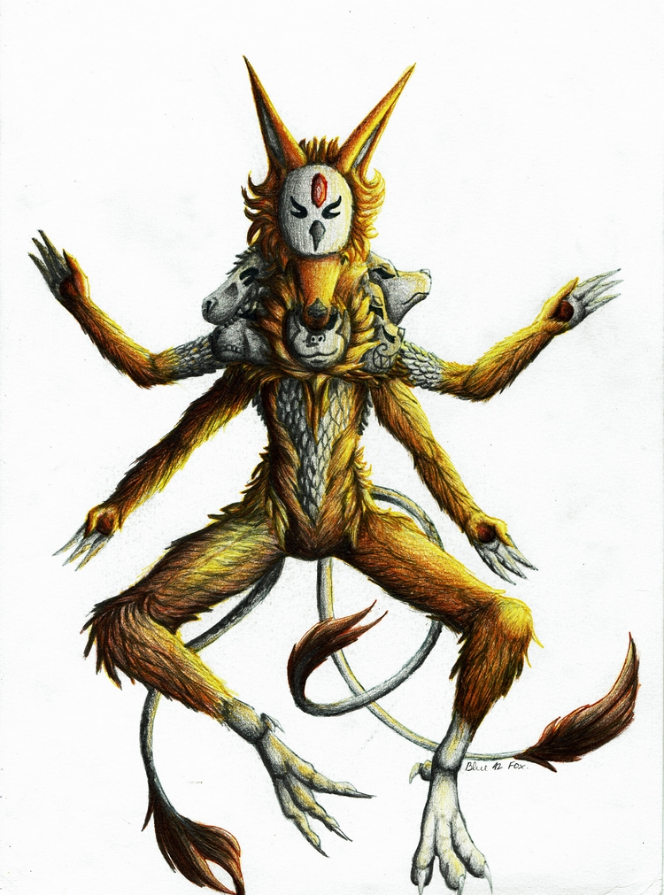 Elle possède d'autres masques incrustés dans son corps, chacun représentant un animal différent! Les masques dans son dos sont plus petits que ceux de son cou et ceux-ci changent d'emplacement à chacune de ses apparitions~ (Les masques sont TOUS blancs/gris avec parfois un élément rouge)