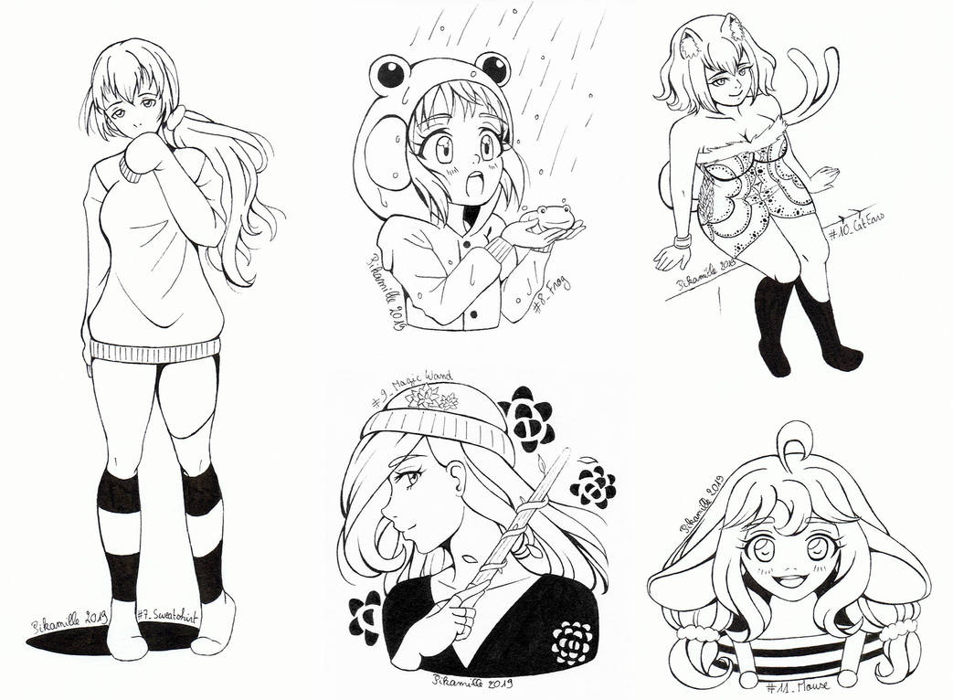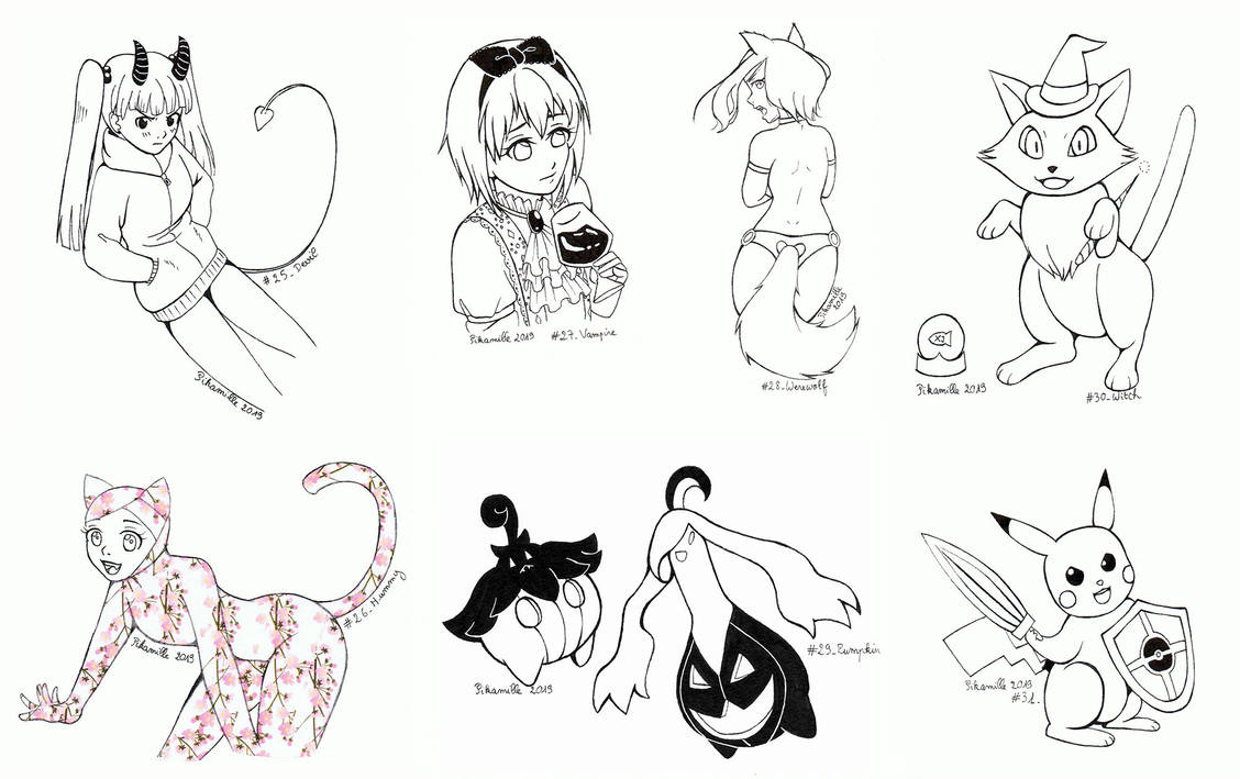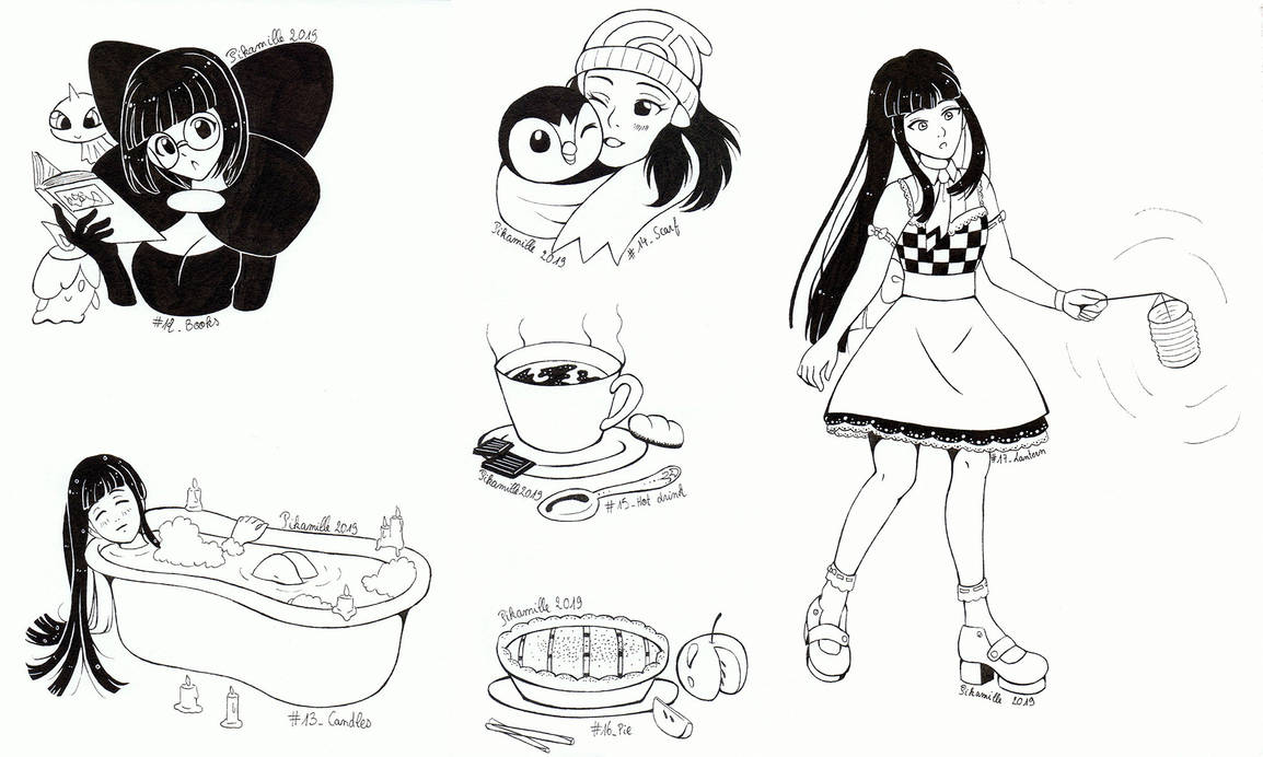 Bonsoir tout le monde! Je viens vous faire profiter de mon Inktober! Ceux qui me suivent sur Instagram (@pikamille31 je vous y attends =P) ont déjà pu les voir mais j'ai pris la peine de préparer des scans de qualité.
