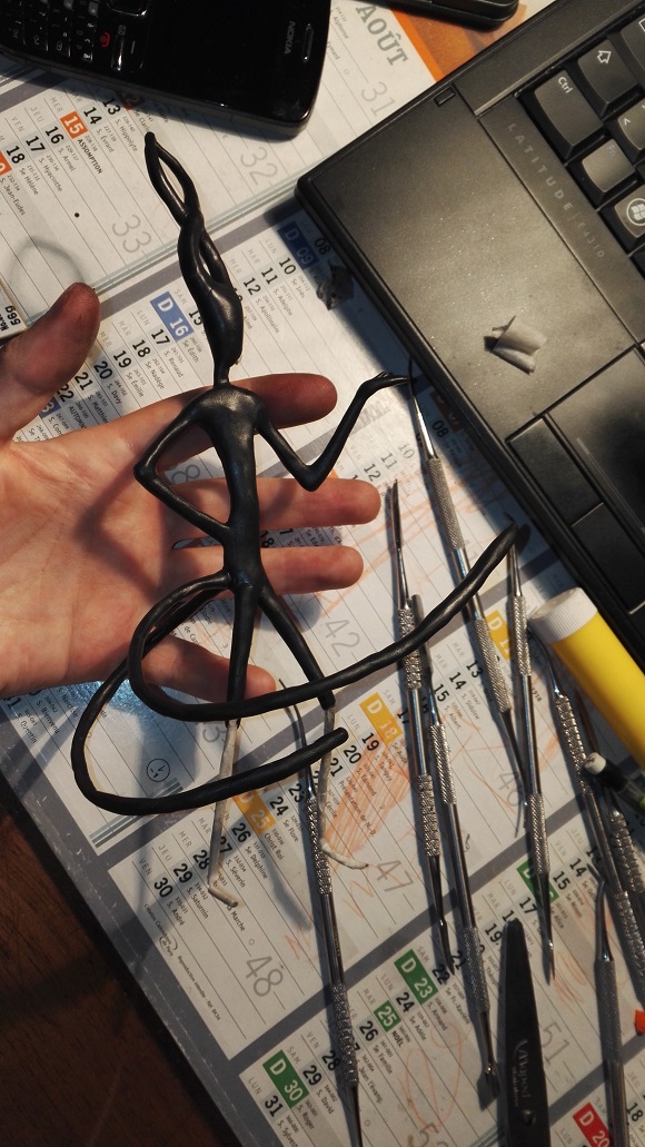Voir l'image en grandJ'ai fait ça ce week-end, entre vendredi midi et dimanche soir. L'inspiration m'est venue d'un coup, alors j'ai demandé du fil de fer et des pinces à mon grand-père, puis j'ai commencé la base. Il s'agit d'un personnage que j'ai adopté auprès de