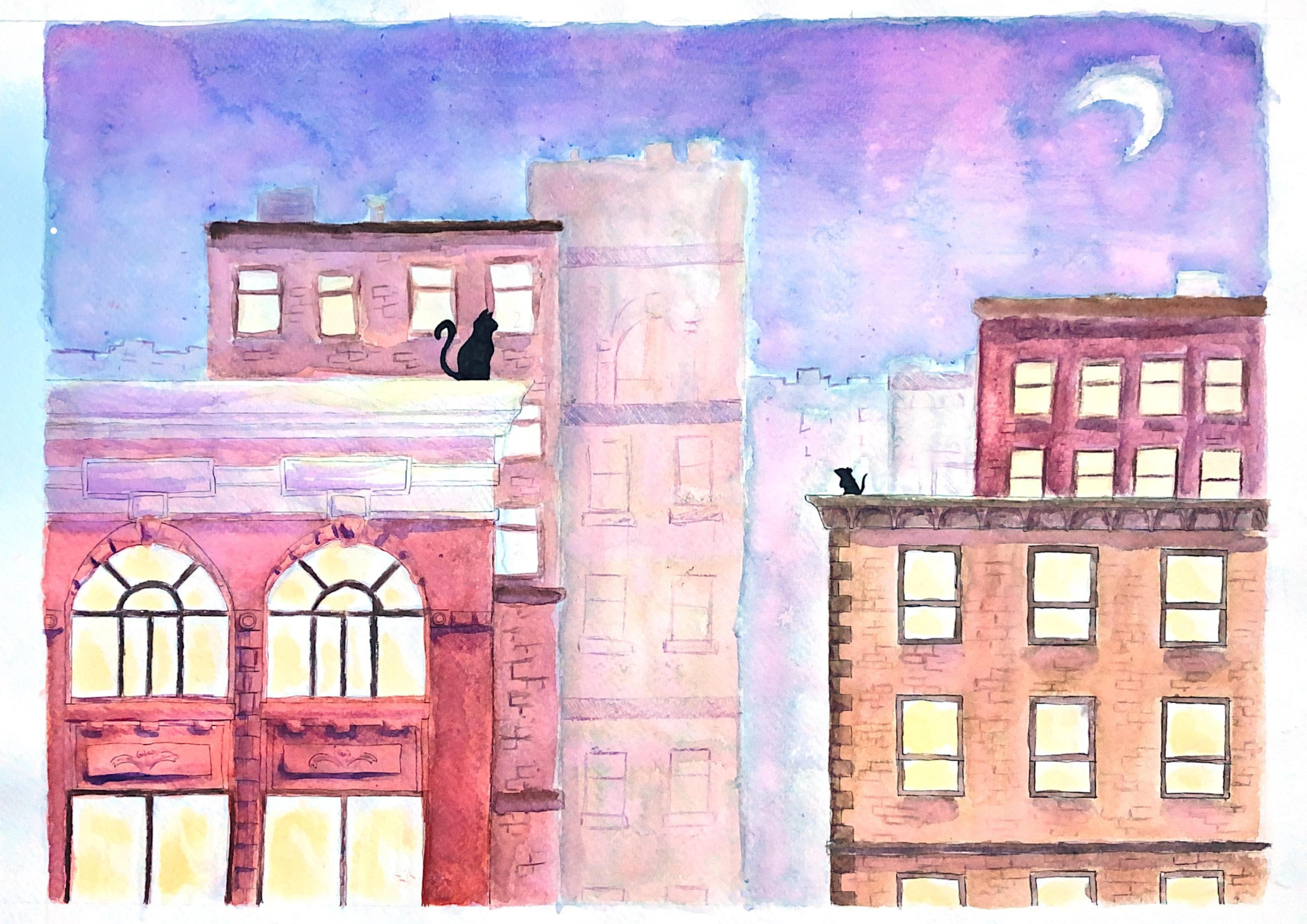 Voir l'image en grandDans le moins réussi j'ai du un peu plus vieux, notamment cette aquarelle, terminée bien trop tard dans la nuit à un stade où un rendu propre n'était plus trop une préoccupation, bon au final ça a un peu plu à mon prof, donc ça va ?