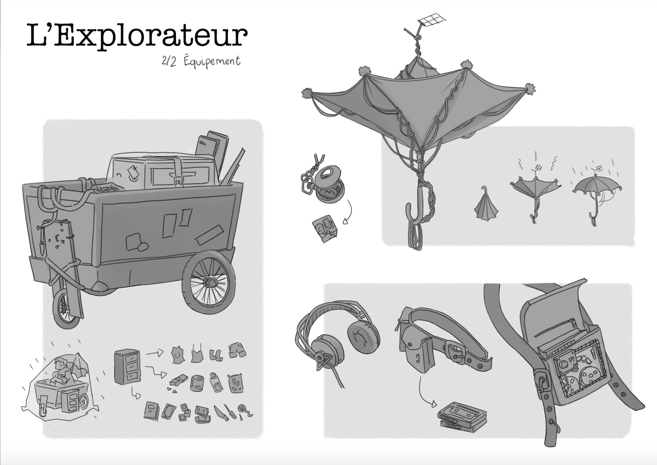 Un travail sur 4x8h où il fallait inventer le design d'un personnage transportant une cargaison importante, puis l'intégrer dans un décor de forêt constitué d'objets de mercerie. J'ai l'impression que plus on a du temps, moins le résultat est bon...