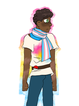 Un dessin de Krys dans autre chose que son uniforme. On voit la Pokéball de Nox à sa ceinture. Et puis son écharpe, bien sûr. Et un haut avec des traces de peinture. Et son binder en dessous.