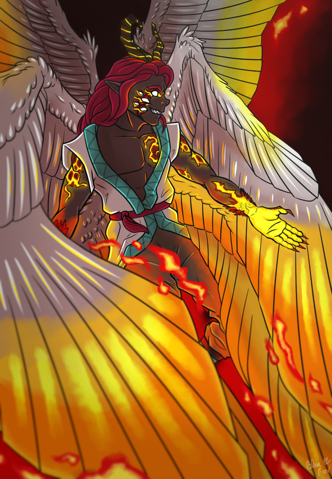 Donc il devient digitigrade et les grosses écailles blanches sur sa tête deviennent des cheveux "en feu" parce que c'est plus stylé