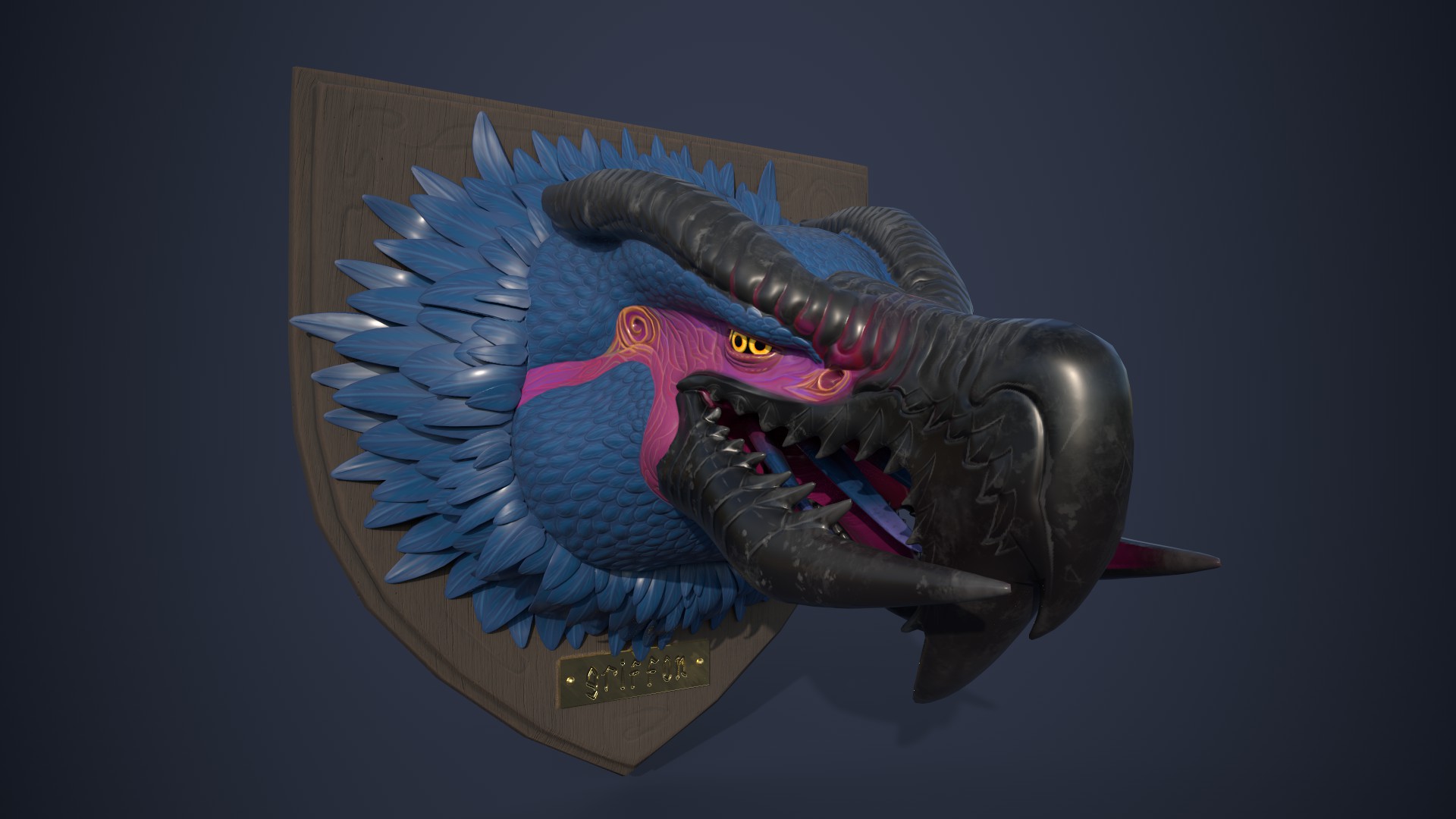 Voir l'image en grandAutre petit dessin de Dhelveth Arron. Je l'ai imaginé avec la pose d'un "MOUHAHAHAHAAAA!" et j'ai ajouté des accessoires. Le fond bleu c'est pour faire un contraste avec son corps. :)
