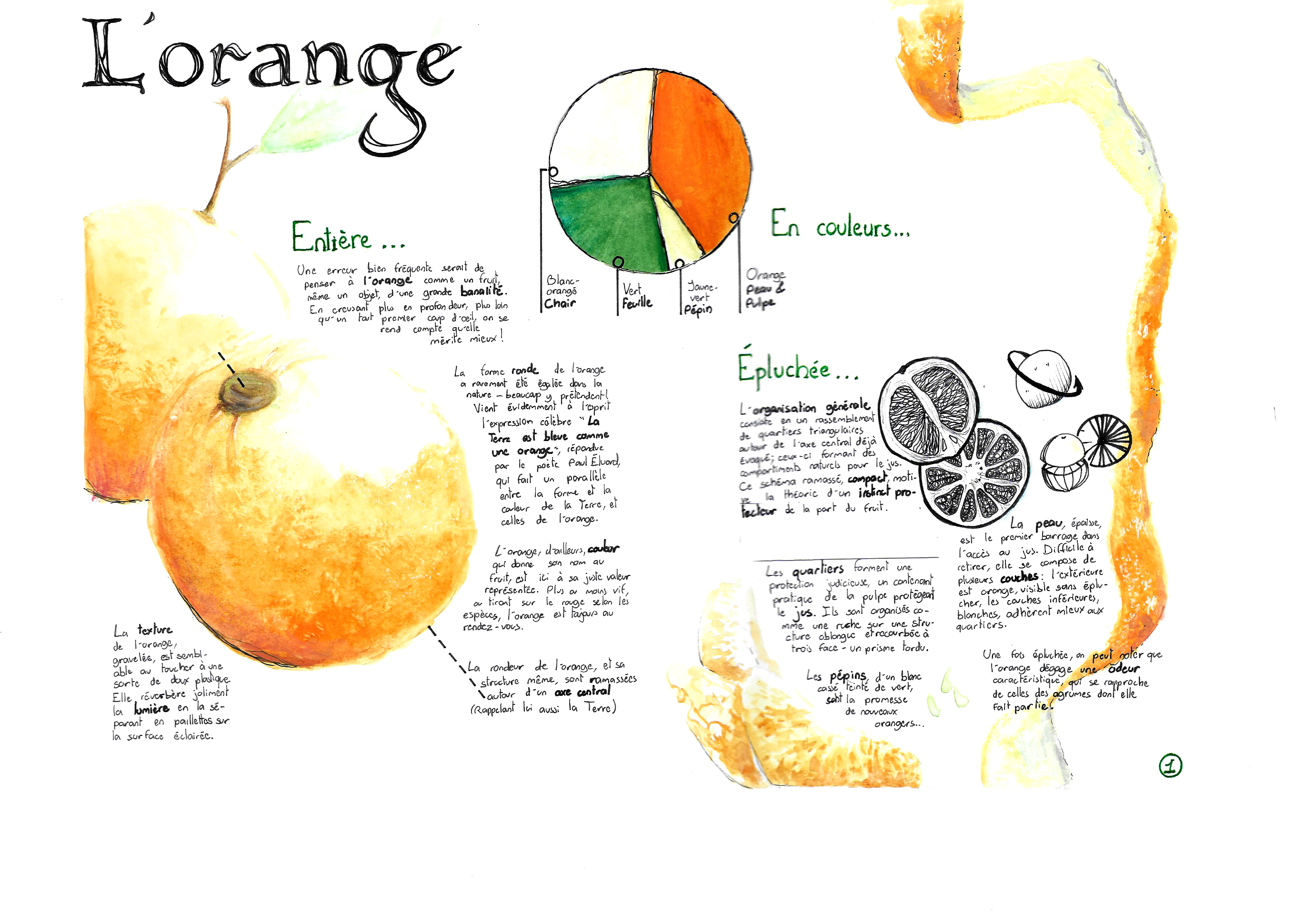 Et un travail antérieur de dem crea (huhuhuhu), consistant en mettre en œuvre tout ce qu'on avait appris sur la mise en page et la typographie pour faire deux planches soignées et organisées pour présenter la fascinante chose qu'est l'orange.