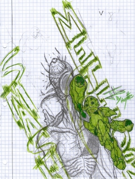 L'heure de PPE ma pousser a faire une connerie et de colorier le golem :<. Mais etrangement le scan fait bien ressortir le vert hummm...