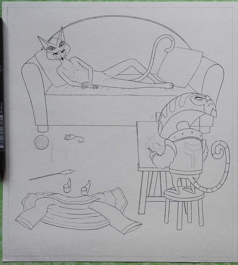 J'ai fait ce dessin pour le Pen'Trait du 05/02/18 sur Kloana :) Je l'ai repassé en noir pour qu'il soit plus facile à décalquer au propre plus tard. J'ai galéré dessus, je pense que je dessinerais mieux un ornithorynque qu'un chat ^^'