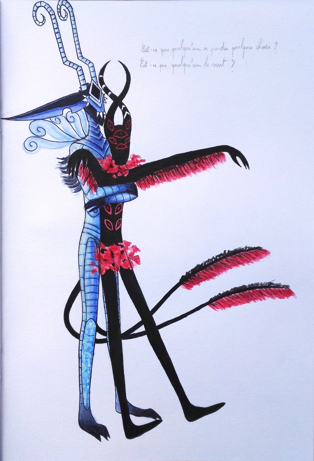 Le dessin d'en-tête est un tir ami contre redoxus (ou redoxus-art sur DeviantArt). À gauche c'est Asmodeus et à droite Beelzebub. Je les avais déjà attaqués il y a 3 ans mais je les adore. Aquarelle et un peu de crayon de couleur.