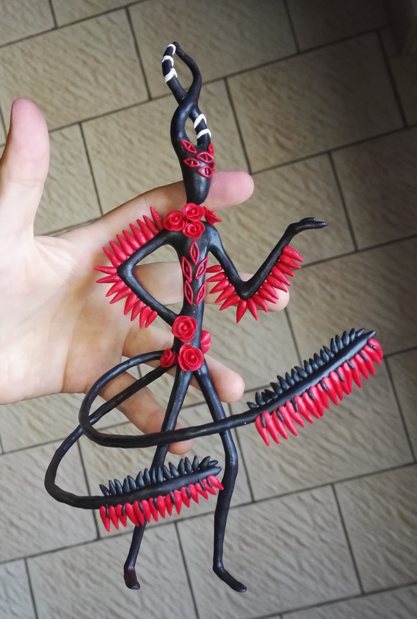 Coucou ! J'ai fait mon fakemon Diabolin, créé pour le concours Pokébip été 2019, en Fimo :) La figurine fait environ 5 cm de haut. Vous pouvez voir l'"artwork officiel" dans mon article "Yo yo, kite kudasai !" du 16/10/2019.