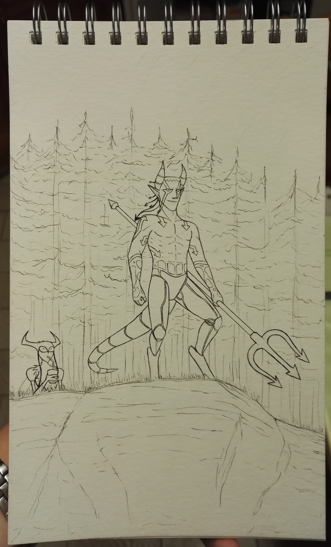 Cette année je n'ai pas envie de faire de petites attaques comme l'année dernière, mais plutôt des illustrations travaillées. Déjà parce que j'ai plus de temps, et aussi parce que quand je fais de petits dessins qui ne sont pas "personnels" (mes petits fanarts du Petit Dinosaure sont personnels car je tiens à ces personnages) j'ai l'impression de gaspiller du matériel et je ne sais pas sur quel support les dessiner. Surtout que j'ai inauguré un nouveau carnet avec cette attaque ^^'