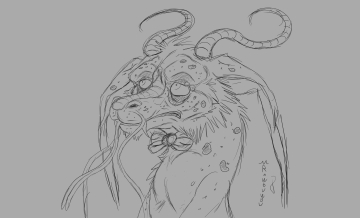 Voir l'image en grandDans le moins réussi j'ai du un peu plus vieux, notamment cette aquarelle, terminée bien trop tard dans la nuit à un stade où un rendu propre n'était plus trop une préoccupation, bon au final ça a un peu plu à mon prof, donc ça va ?