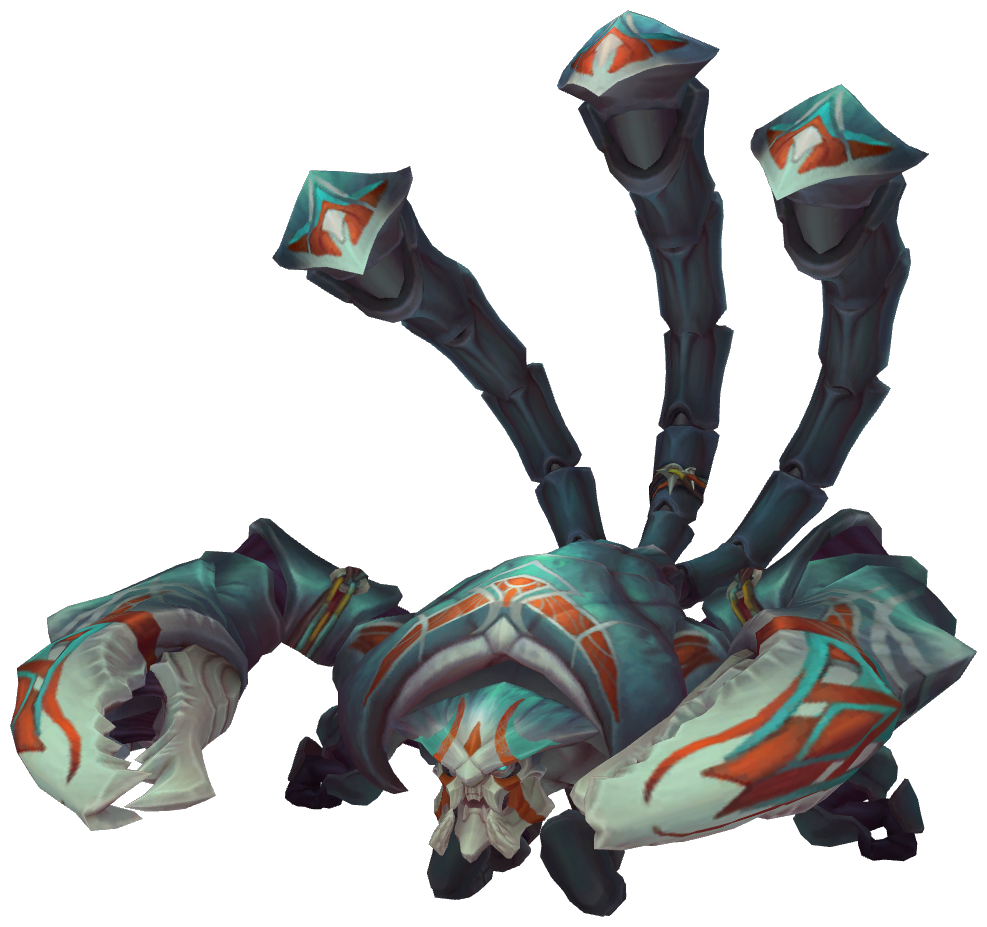 Même si c'est un Champion dont je trouve le design exceptionnellement beau (et puis inspiré d'un scorpion, bordel quoi), la difficulté de sa création n'a d'égale que mon admiration envers Skarner. En effet les nombreuses plaques sur son corps m'ont bien, bien faîtes galérer. Modèle ici : http://vignette3.wikia.nocookie.net/leagueoflegends/images/6/62/Skarner_Render.png/revision/latest?cb=20140915143607. Autant dire que j'étais pas aidé pour les détails (on notera la bouillie de pixels à la base de sa queue ainsi que sur sa pince droite). Sans doute perfectible (doux euphémisme), je voulais tout de même le poster parce qu'il m'a pris du temps, le bougre. Je lui ai rajouté des pupilles même si l'original n'en n'a pas d'ailleurs. J'ai testé les deux versions et j'ai posté celle que je préfère. Promis je tâcherais de mieux faire la prochaine fois.