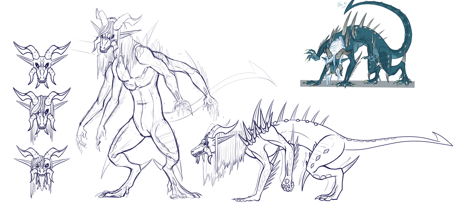 J'étais en train de dessiner des bestioles un peu au pif, et vu que l'une d'entre elles commençait à avoir une gueule assez sympa, j'ai décidé de dépasser l'étape du sketch (pour une fois) et la terminer. Voilà donc un curieux mélange entre un lion, un dragon et d'autres bestioles.