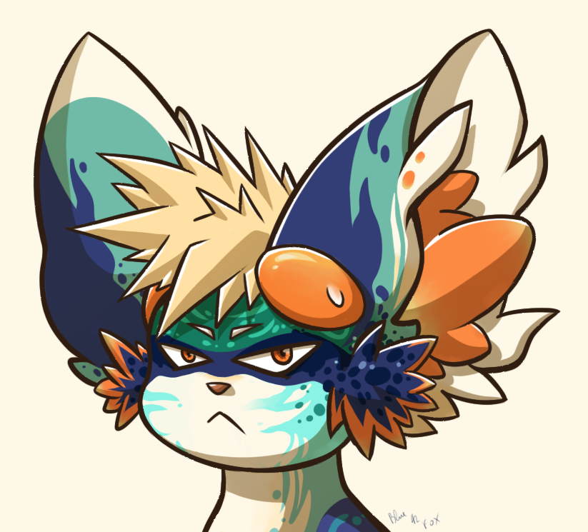 L'idée de base c'était une divinité gardienne d'une forêt mais qui s'est fait corrompre par des forces obscures :3