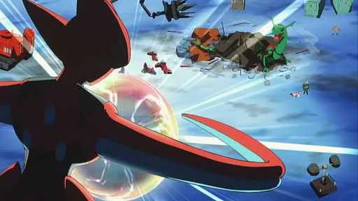 Voici des images tirées du DVD Rip japonais de Pokémon Destiny Deoxys, elles concernent le début du film et le premier combat de Deoxys face à Rayquaza.