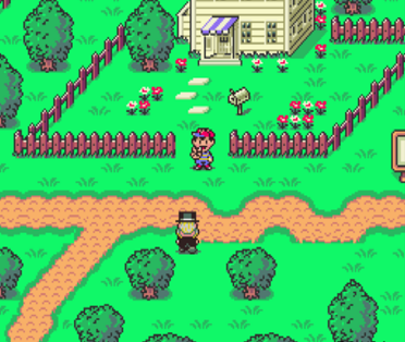 totalement similaire au vrai monde. Dans les RPG de l'époque, les univers se passaient bien souvent au Moyen-Age, dans le futur, dans des contrées lointaines, bref, dans des univers loin du notre. Mother 1 et 2 se passent en