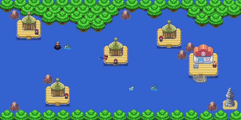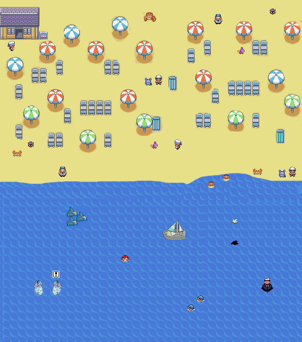 Voici la version definitive de l'ile naufrage avec un naufragé un gars de la team aqua (j'ai pas trouver mieu desolé) et pour Yellow'Rukario j'ai rajouter comme il me l'avait demander le petit mew, qui est d'ailleur tous etonner devoir quelqu'un sur son ile, je l'ai realiser avec l'ile mirage et des bouts d'autre villes.