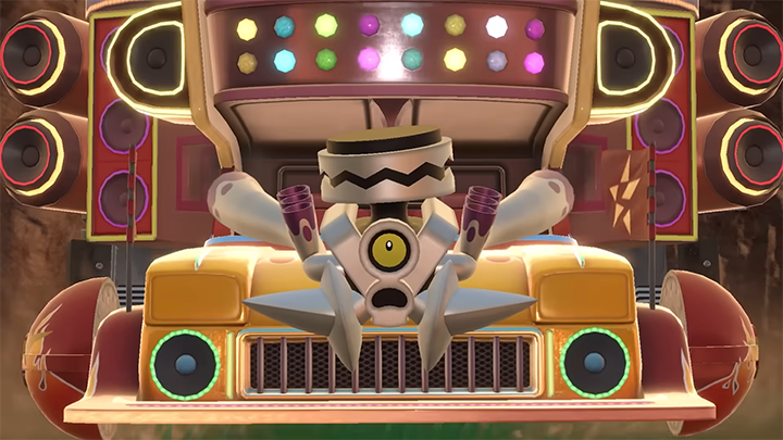 Vous devrez venir à bout du boss, mais il semblerait que leur Starmobile puisse se mettre en travers de votre chemin et que vous devrez vous battre contre elle en plus des Pokémon du boss. Serait-ce parce que cette Starmobile est un Pokémon à part entière ? Après tout, nous voyons une langue sortir du moteur sur l'artwork principal de la trame.