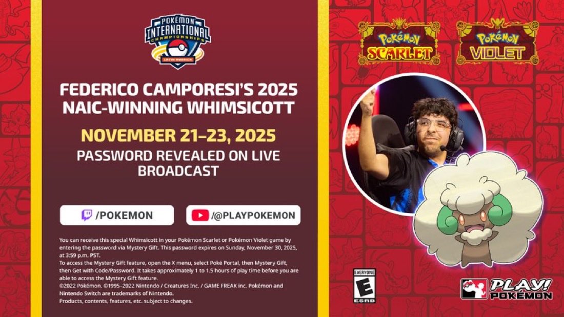 Dès le 21 novembre 2025, un code universel permettant de récupérer un Farfaduvet inspiré de celui du vainqueur de l'International d'Amérique du Nord, Federico Camporesi, sera dévoilé durant la diffusion de la compétition. Il sera utilisable sur Écarlate et Violet :
