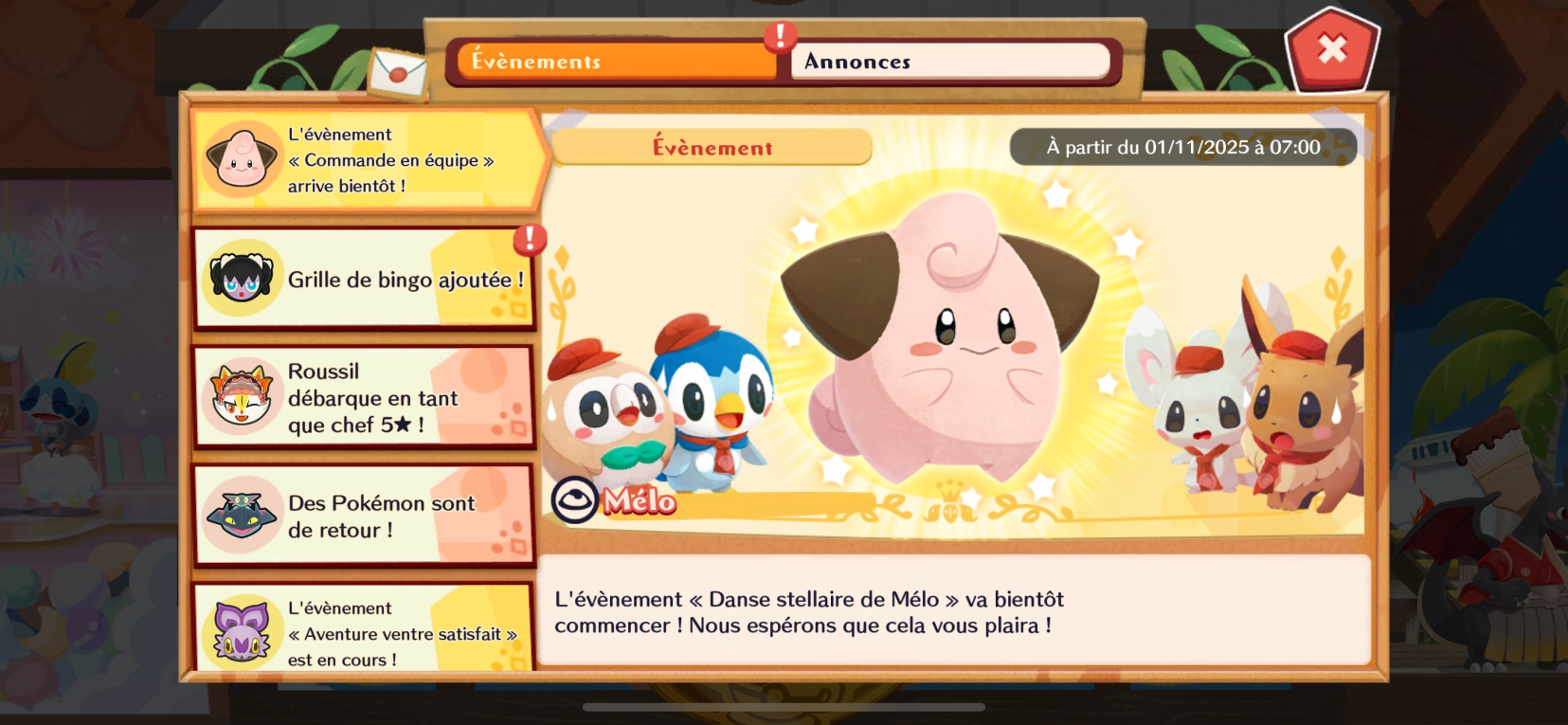 Nouvel évènement en équipe avec Mélo disponible du 1er novembre au 6 novembre.