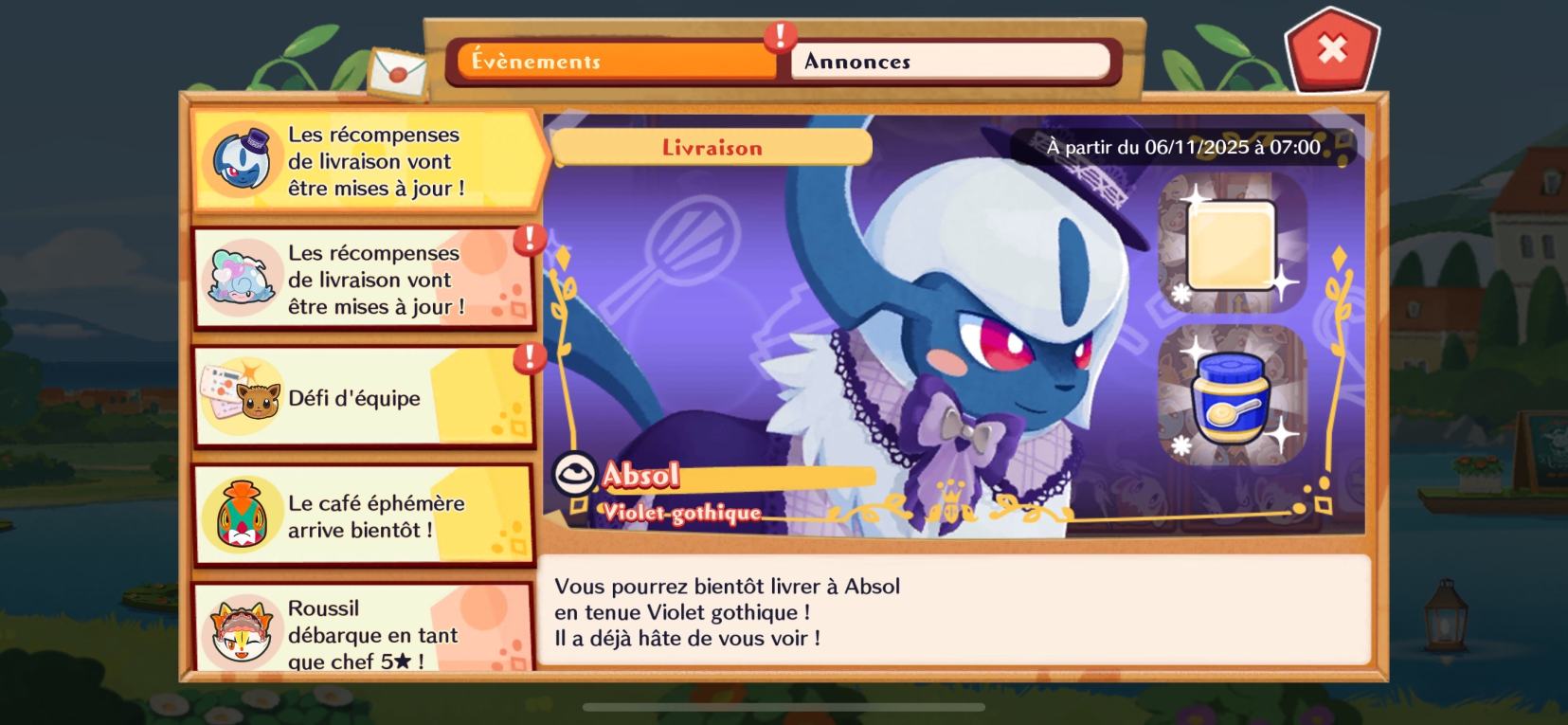 Absol (Violet gothique) sera en vedette via la Livraison, du 6 novembre au 17 novembre.