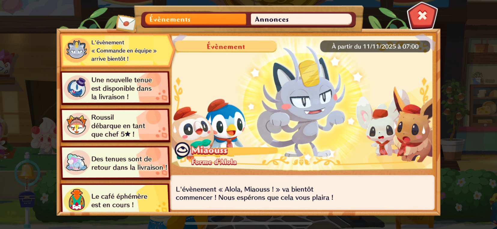 Nouvel évènement avec Miaouss d'Alola disponible du 11 novembre au ??.