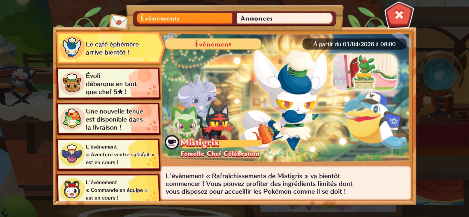 Nouvel évènement avec Mistigrix F (Chef Célébration), disponible du 1er avril au 11 avril.