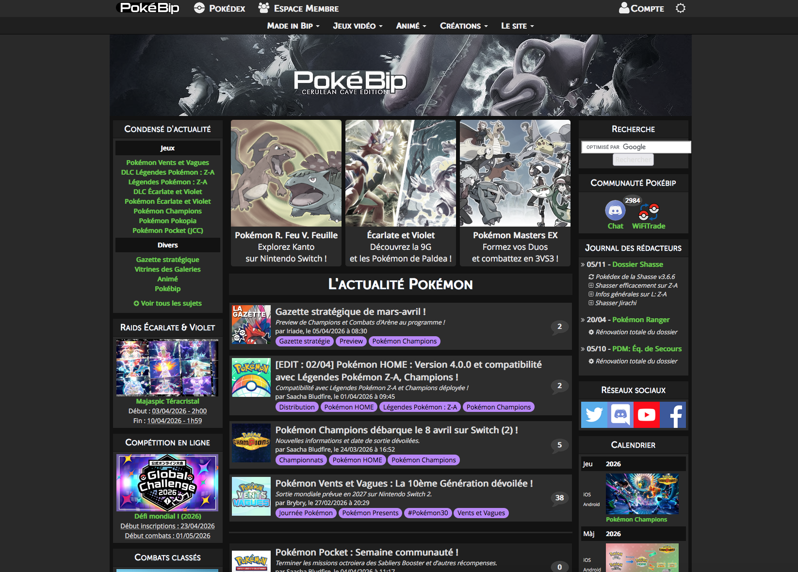 Toujours plus nombreux à nous consulter chaque jour, cette demande avait été faite par bon nombre d'entre vous et ce depuis un moment maintenant. Sachez que c'est désormais chose faite, puisque vous pouvez enfin activer/désactiver le mode sombre sur Pokébip selon votre convenance (aussi bien sur mobile que sur PC et partout sur le site) !Toute l'équipe du site espère que ce nouvel ajout plaira et améliorera votre expérience sur Pokébip. Merci à Reap pour son excellent travail quant à la mise en place de ce thème sombre, tant demandé par la communauté !
