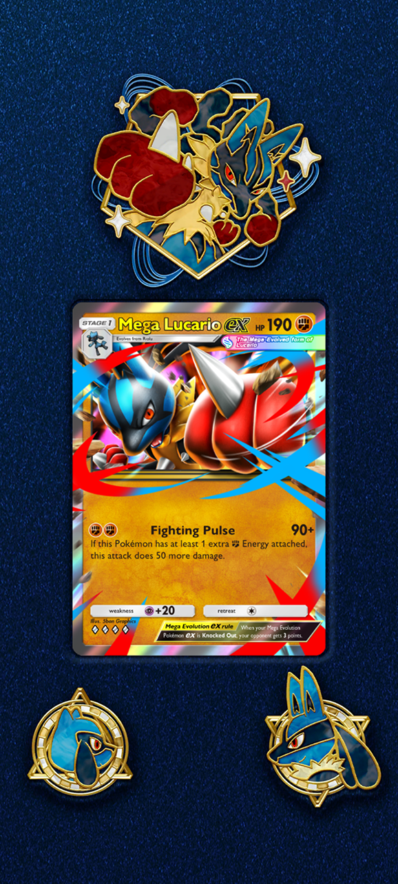 Méga-Lucario et son aura inégalée seront à l’effigie de nouveaux Arrière-Plans et Couvertures de portfolio afin d’exposer vos nouvelles cartes avec style dès le vendredi 1er mai.