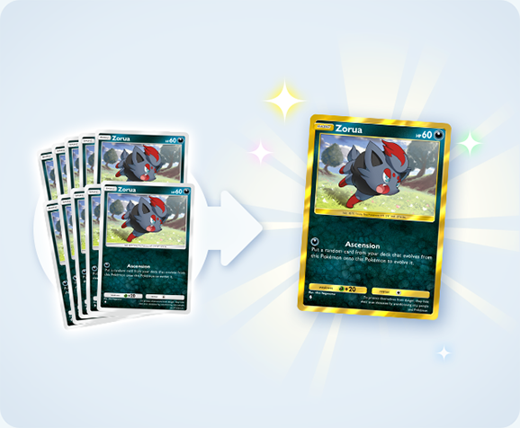À partir d’Aura Palpitante, des cadres d’or seront disponibles en guise d’effets déco pour les cartes de rareté ◆, ◆◆, et ◆◆◆ de toutes les séries. Vous pourrez obtenir un cadre d’or automatiquement en collectant 10 exemplaires d’une même carte. De plus, vous recevrez un cadre d’or automatiquement pour chaque carte que vous possédez déjà en 10 exemplaires ou plus. Si vous souhaitez obtenir plus de cadres d’or, vous pourrez le faire en consommant les exemplaires en double d’une même carte dans le menu « Obtenir effets déco ».