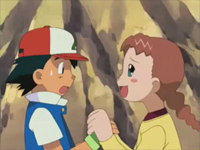 Deuxième fille que Sacha va prendre pour un garçon (la première est Anabel), Angie est en tout point la version fille de Sacha. Elle et le dresseur se sont rencontrés à la Pokémon Summer School. Durant la partie "Triathlon", Jessie (alias "Jessilinda") va essayer de saboter la course en ralentissant les autres concurrents. En créant une explosion, Angie s'est fait propulser vers une crevasse très profonde. Tentant d'abord de remonter seule, elle va être aidée par Sacha. Après ça, une petite discussion suivie de rougissement. Le shipping revient au dernier épisode de la Pokémon Summer School, d'abord au début où Angie rougit en voyant la main tendue vers elle de Sacha pour être fair-play. Angie s'en va sans rien dire en courant. Par la suite, Sacha avoue que c'est normal de s'aider entre amis. "Amis... ouais..." en guise de réponse (ils parlaient dans la crevasse).