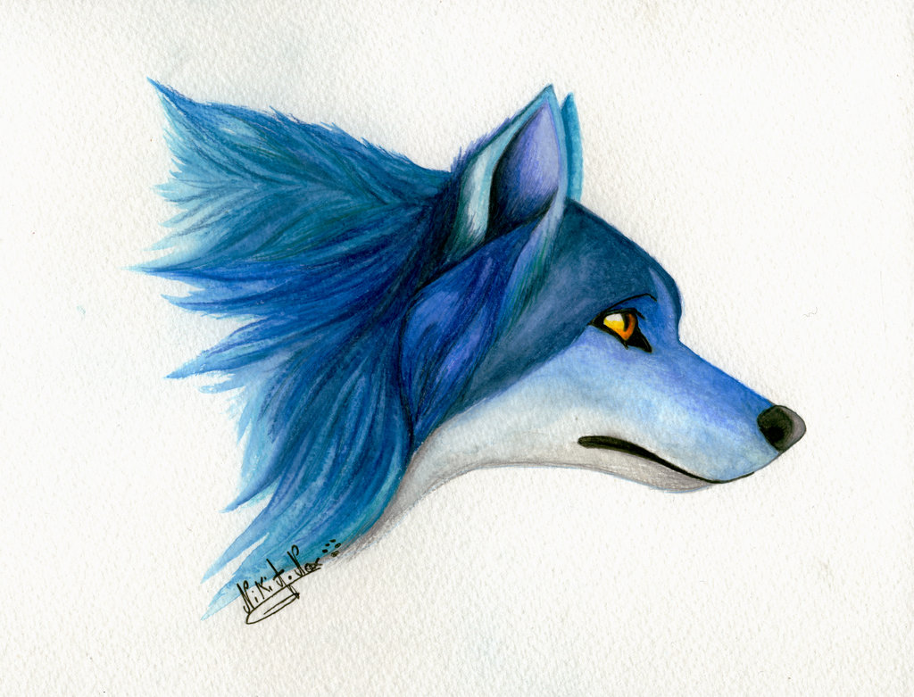 Pour un premier test aux crayons aquarelle, c'est une réussite ! Tout ce qu'on peut regretter sur ce sublime ce loup bleu, c'est qu'il n'y ait que la tête ! La fourrure du cou donne une bonne impression de volume et ces yeux jaunes viennent relever le tout au milieu de ces diverses teintes de bleu.