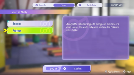 Les PP et Abri ne sont pas les seuls aspects à avoir fait l'objet de modifications. Selon la preview du joueur de VGC Wolfe Glick , certains Pokémon ne disposent pas de capacités qu'ils apprennent dans Écarlate et Violet. Il cite notamment Sabotage sur Félinferno. Les changements de capacités apprises entre les jeux sont monnaie courante en VGC, et Champions semble suivre les traces de ses prédécesseurs sur cet aspect.