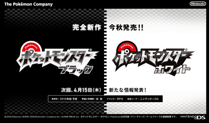 Le 9 Avril 2010, les noms des deux nouvelles versions Pokémon, celle qui dévoileront la cinquième génération de monstre, ont été révélés : Pokémon Version Black et Pokémon Version White !