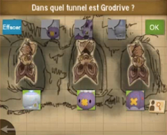 - Parlez à Baudrive, il vous aide à réveiller les Funécire qui révèlent une zone avec 3 Sonistrelle siégeant l'entrée de 3 tunnels. Seul un tunnel mène à Grodrive, récoltez un maximum d'informations pour trouver le bon !
