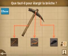 Tentez alors d'indiquer comment fabriquer une pioche dans vos Pistes.