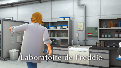 La directrice, Dorothy arrive avec un chercheur Frederick "Freddie" à qui elle confie votre garde. Il vous demande de le suivre, dans son labo.