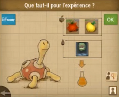 Vous pouvez désormais commencer l'expérience en parlant à Nina. Il faut choisir les 2 bonnes baies et le bon liquide pour donner un bon goût et une couleur orangée au liquide !