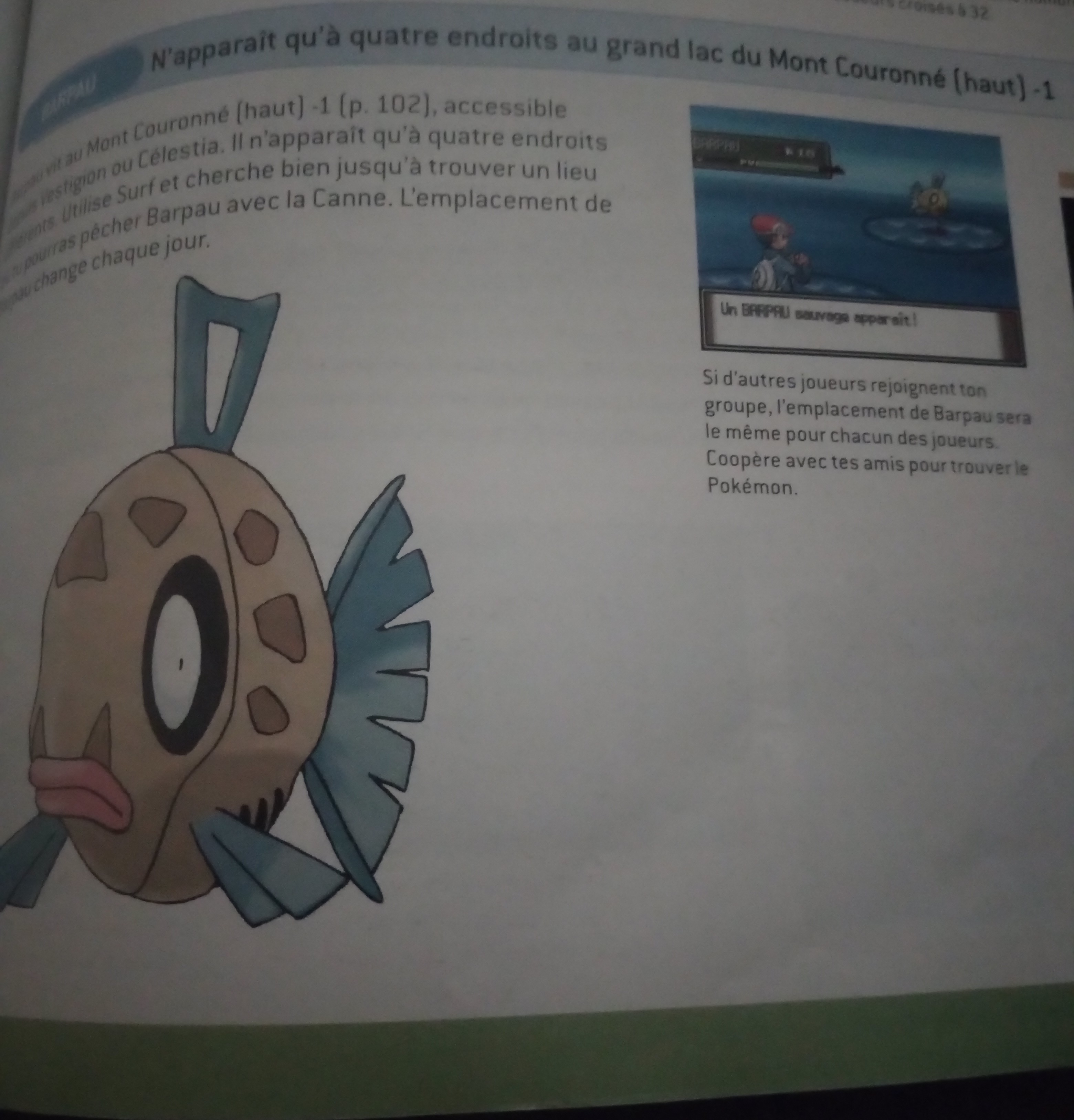 Le plus simple pour commencer à chercher Barpau est de commencer tout en haut de la Route 119, c'est-à-dire de partir du côté de Cimetronelle et de pêcher 2-3 fois dans chaque case pour être presque certain qu'un Barpau s'y trouve (ou non). Si vos cases se trouvent toutes dans un endroit disponible et que vous pêchez une fois sur les 444 cases disponibles, il y a environ 1/64 pour que vous ne trouviez aucun Barpau.