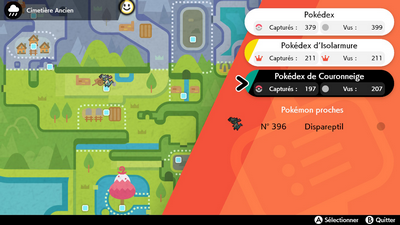Un surnom peut faire maximum 12 caractères dans les langues internationales ou 6 pour les langues asiatiques.Les formes chromatiques des Pokémon sont enregistrées dans le Pokédex, mais vous ne pouvez plus mettre une fiche en raccourci.