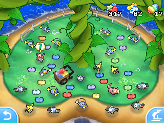 Dans les versions anglaises, l'issue est recalculée à chaque fois. Cependant, dans les versions françaises, le résultat sera toujours identique si aucune action n'est faite ! Pour essayer de faire rester le Pokémon, récoltez une fève et faites-en tomber une, cette action modifie les départs et arrivées des Pokémon sauvages ! Le nombre de fèves tombées est important, car un nombre différent donne un résultat différent.