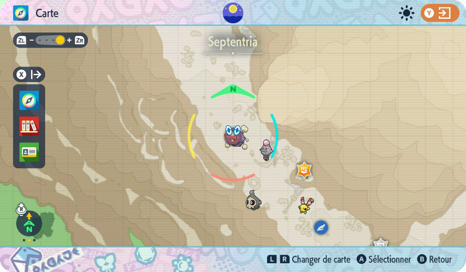 Si rien n'est précisé, c'est la journée dans Soleil et Ultra-Soleil et la nuit dans Lune et Ultra-Lune qui sont mis par défaut.| Jeu | Méthode | Localisation | Pourcentage |