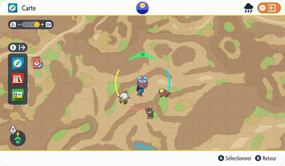 Si rien n'est précisé, c'est la journée dans Soleil et Ultra-Soleil et la nuit dans Lune et Ultra-Lune qui sont mis par défaut.| Jeu | Méthode | Localisation | Pourcentage |
