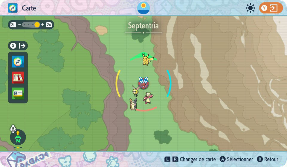 Si rien n'est précisé, c'est la journée dans Soleil et Ultra-Soleil et la nuit dans Lune et Ultra-Lune qui sont mis par défaut.| Jeu | Méthode | Localisation | Pourcentage |