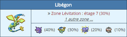 La ligne juste en dessous sera écrite seulement s'il est dans d'autres zones que celle indiquée. Il suffit de passer la souris dessus pour les afficher avec leur % maximum. Il y aura également marqué en quoi il est plus dangereux dans la zone non-mise en avant s'il y a le même % d'apparition.