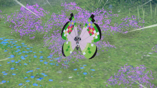 Avec un Sandwich Insecte de niveau 3, Lépidonille est trouvable dans l'herbe sur la Route de Cuchalaga à 55.45%. Prismillon motif Fantaisie est, quant à lui, disponible à au moins 60% dans les fleurs de la Zone Nord n°3 avec le même Sandwich. Pérégrain est trouvable à au moins 41.43% dans les fleurs de la Zone Sud n°1 et 4, mais les endroits sont tellement petits qu'il est presque certain de tomber sur beaucoup d'autres Pokémon chromatiques avant lui...Il est également possible de tous les shasser à 100% avec les Apparitions Massives, autant en taux plein que pour ceux voulant un taux de chromatique plus élevé.