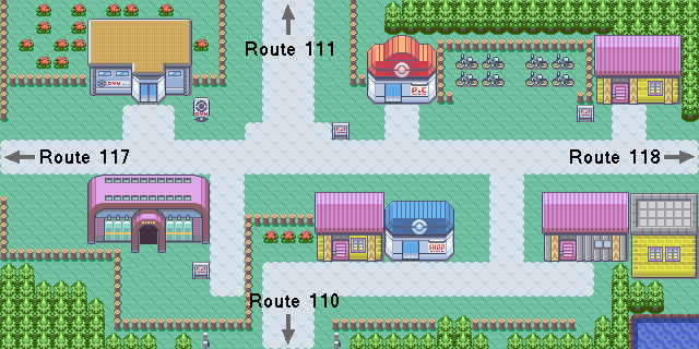 Céladopole : la Route 16 contient une zone d'herbe 3x9 délimitée par des arbres, directement en face du portail nord. Coupe est nécessaire ;