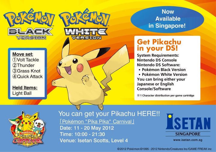 Ce Pikachu a été distribué du 11 mai au 20 mai dans le magasin "Isetan Scotts" de Singapour, à l'occasion du « Pika Pika Carnival ».