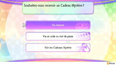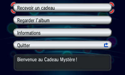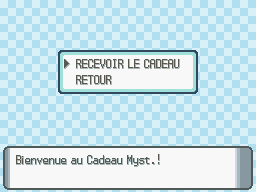 Le Cadeau Mystère est une fonctionnalité qui est apparue en 2G permettant la réception en jeux de diverses choses : objets, Pokémon ou Events. Il apparait ensuite dans tous les jeux de la série principale.Introduction
